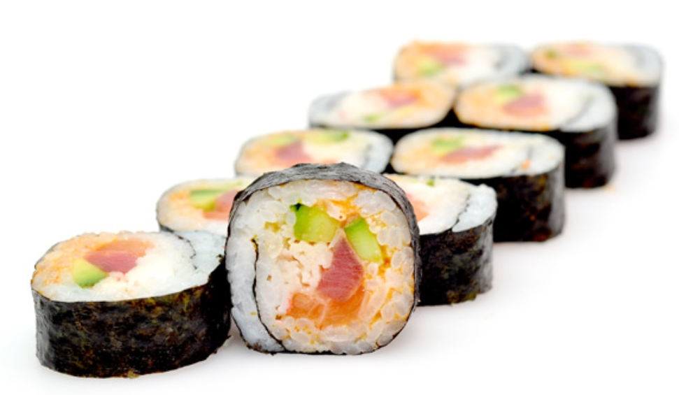 Морской микс 449 руб. В корзину Краб, лосось, тунец, угорь, спайс соус, авокадо (8шт) Краб, лосось, тунец, угорь, спайс соус, авокадо (8шт)