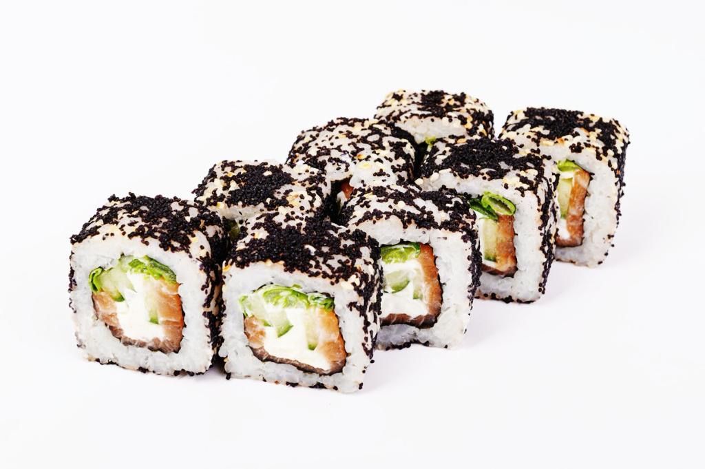 Грин ролл 549 руб. В корзину Лосось, сыр Филадельфия, айсберг, огурец, икра массаго, кунжут. 8шт Лосось, сыр Филадельфия, айсберг, огурец, икра массаго, кунжут. 8шт